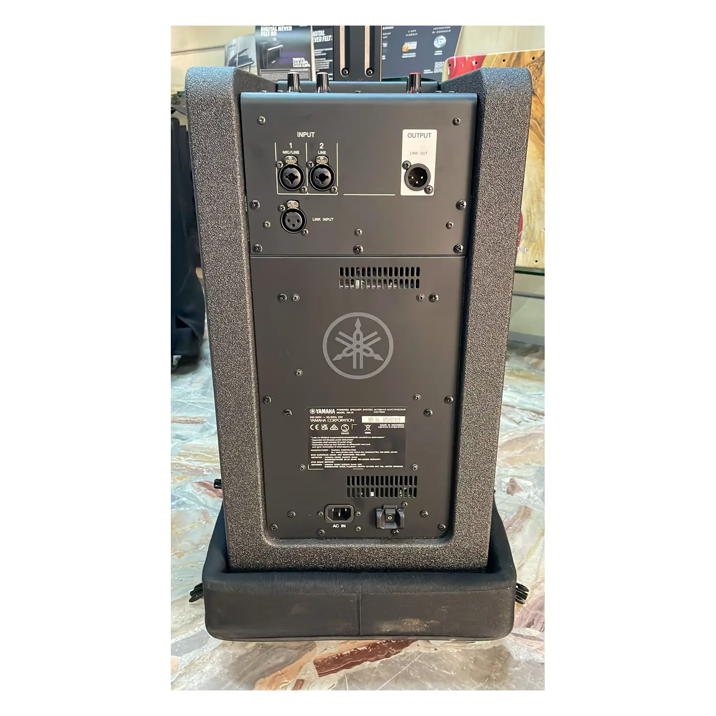Tipo di altoparlante Subwoofer amplificato con altoparlante line array Gamma di frequenza (-10 dB) 37 Hz – 20 kHz Area di copertura H170゚ x V30゚ Crossover 240 Hz Livello massimo di uscita (1 m; sull’asse) 125 dB SPL Ingegneria LF Subwoofer amplificato: cono da 12” (30 cm) HF Altoparlante line array: cono da 1,5” (3,8 cm) x 10 Classe Amplificatore Classe D Potenza nominale Dinamico 1100 W consumo di energia 25 W (inattivo), 91 W (1/8 della potenza) Requisiti di alimentazione A seconda della zona di acquisto: 100 V 50 Hz/60 Hz, 110-120 V 60 Hz, 220 V-240 V 50 Hz/60 Hz Processori MODALITÀ (DISCORSO/MUSICA/CLUB) Connettori I/O INGRESSO 1: Combo x1 (microfono/linea), INGRESSO 2: Combo x1 (linea), LINK IN: XLR x1, LINK OUT: XLR x1 Maniglia Parte superiore del subwoofer amplificato x1 Dimensioni (L x A x P) Sistema: 334 x 2.000 x 418 mm (massimo), Diffusore line array: 67 x 582 x 86 mm, Subwoofer amplificato: 334 x 550 x 418 mm, Distanziatore: 67 x 555 x 86 mm (ciascuno) Peso Sistema: 23,0 kg (massimo), Diffusore line array: 1,8 kg, Subwoofer amplificato: 20,0 kg, Distanziatore: 0,6 kg (ciascuno) Accessori Cavo di alimentazione e borse per ogni sistemaper altri articoli simili a Yamah 2 casse attive DXL 1K usate clicca qui!!